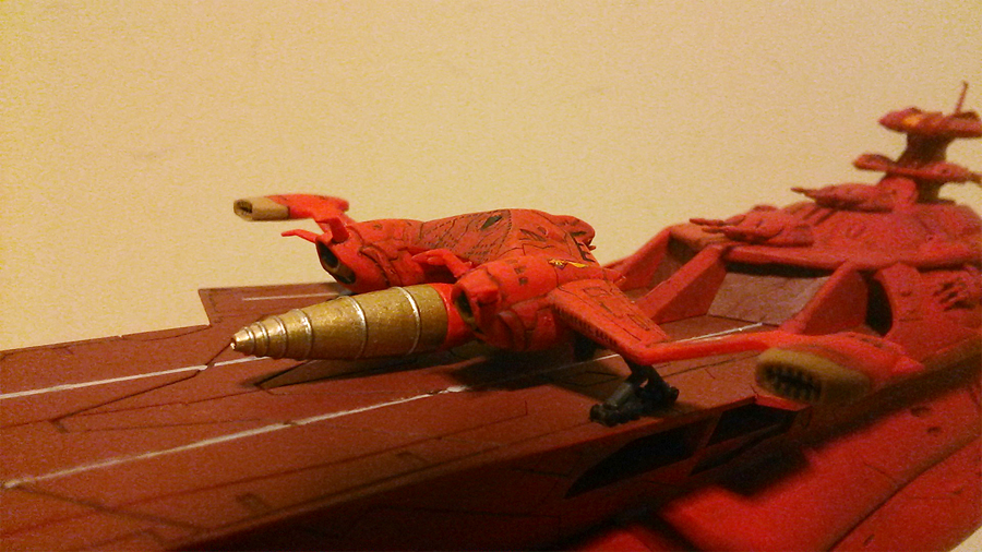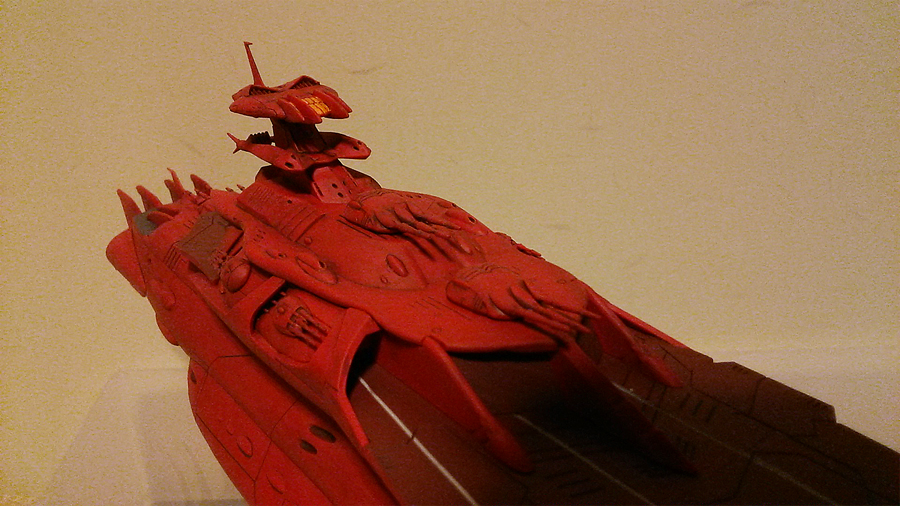 作品は素組みですがシャープな造形で特に改造の必要は感じませんでした。 塗装はクレオスのヤマトカラー「ダロルド用」セットの3色を基本とし、タミヤエナメルのXF-9ハルレッドでスミ入れと汚しを加えております