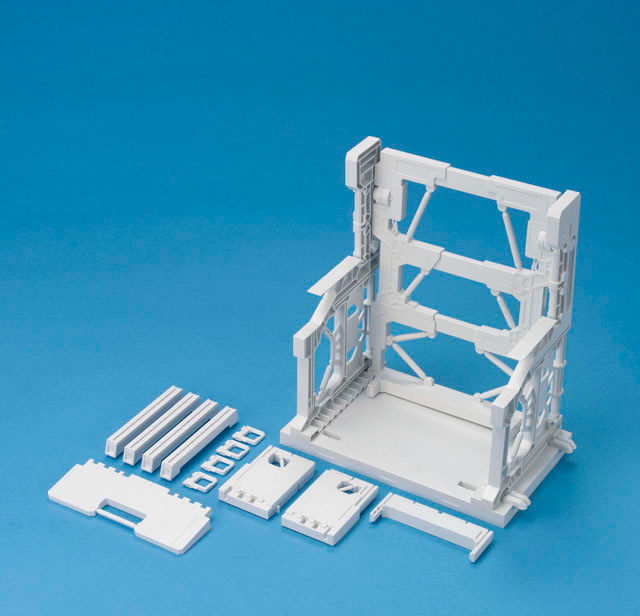 ガンプラをさらに楽しくする拡張パーツシリーズ。臨場感あふれるディスプレイに最適なシステムベース。背面パーツは左右に伸縮可能。サイドには武器ラックを追加できる。