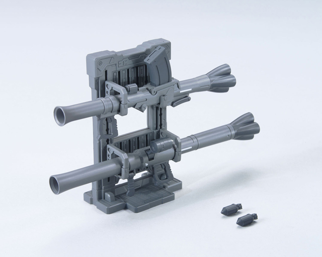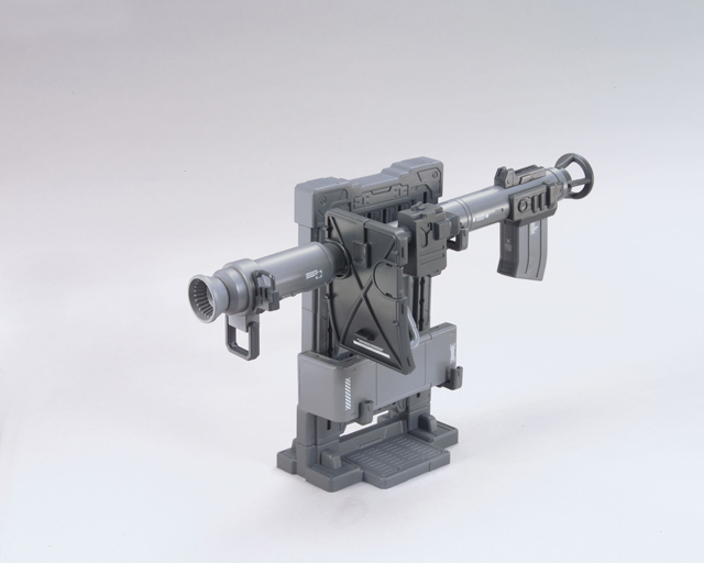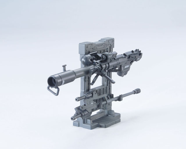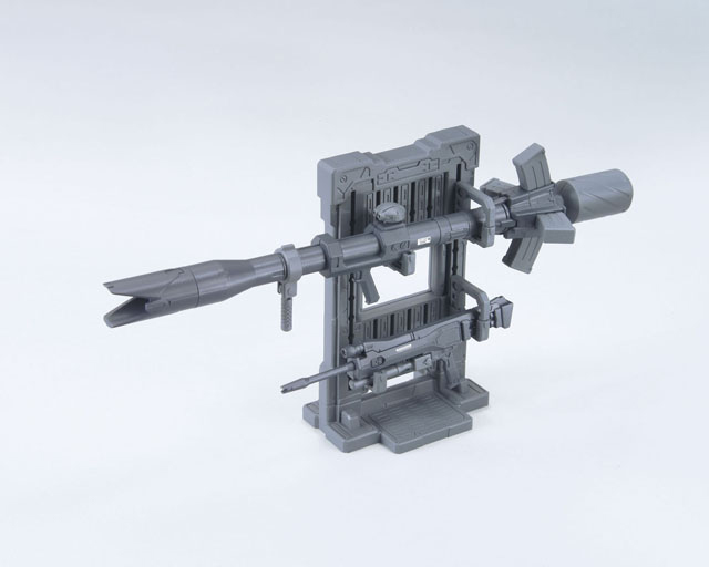 ガンプラをカスタムできる公式パーツ。 バズーカとスピアのセット。パーツ組み換えにより、それぞれ2種類の武器を再現可能。専用ラック、ハンドパーツ付属