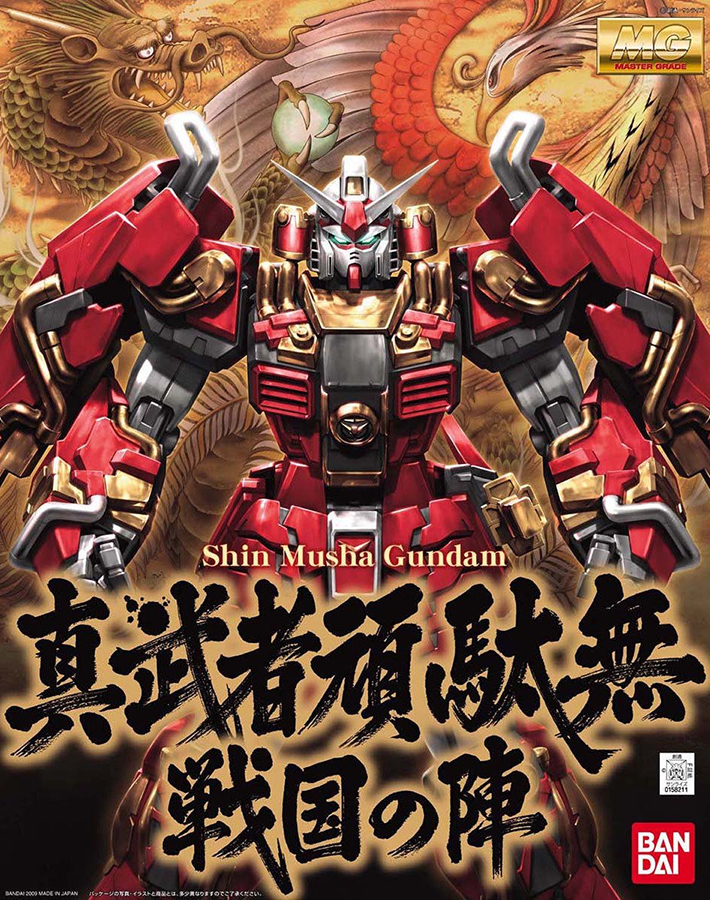 5月人形を彷彿とする煌びやかなMG真武者頑駄無が登場 各部に施されたゴールドメッキとグロス成形により日本伝統の蒔絵を思わせる仕上がりを実現 刀、火砲、槍、薙刀を装備 絢爛豪華な飾り台には、各武器専用のスタンドと屏風、専用プレートが付属