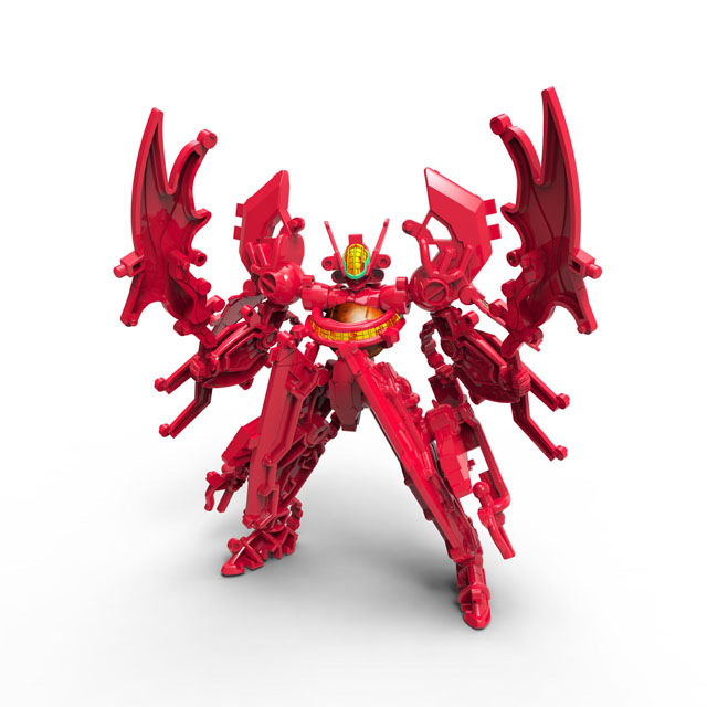 ロボフォームでは、サターンがガイアとともに「気合と根性」を高めて変身した金色に輝く姿に、ウェポンフォームでは黄金に輝く巨大な鎌「サターンスラッシュ」に変形。 別売りのガイアフレーム(Ver.キメラフォームカラー)と合体させて、キメラフォームに挑戦しよう。