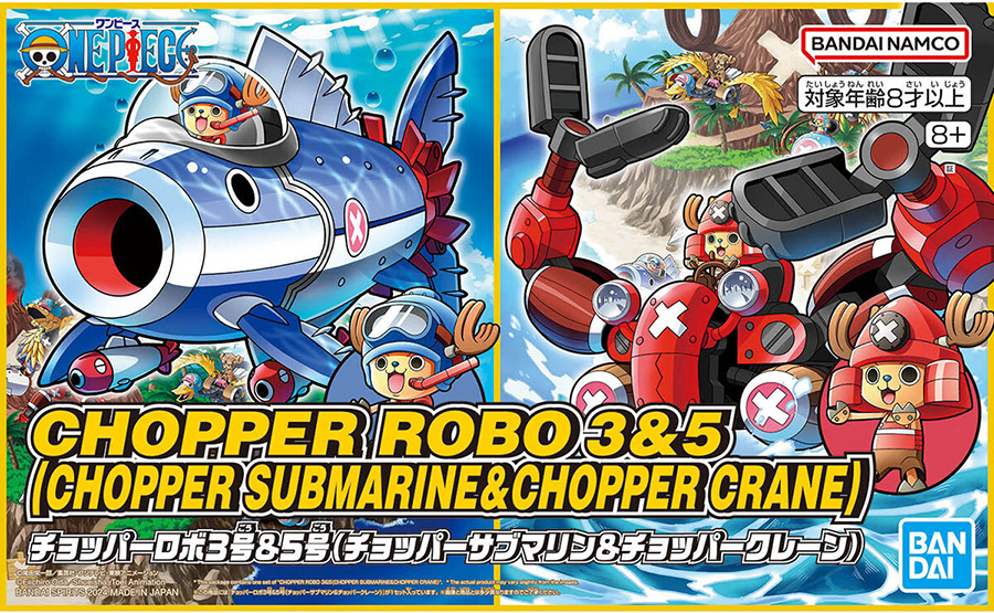 オリジナルメカ「チョッパーロボ」が、「チョッパーロボ3号 チョッパーサブマリン」、「チョッパーロボ5号 チョッパークレーン」のセットで登場!