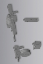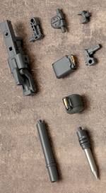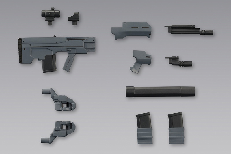 折り畳み式ライフルの銃口は3mmの接続穴になっており、 各種M.S.Gを装着することも可能。