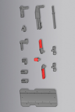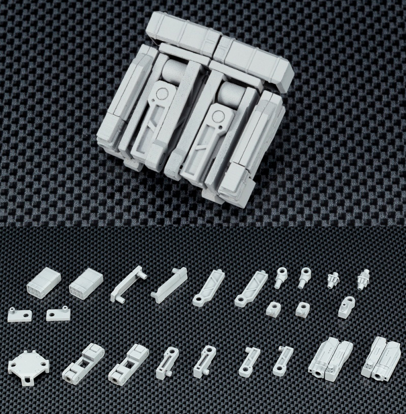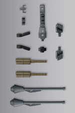 各パーツは分解し、連結パーツとして使用する事も可能で、 各軸などは3mm軸になっている為、各種M.S.Gを使用する事ができます。