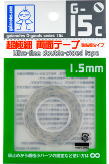 超極細タイプの両面テープです。今までになかった極細タイプで、模型やフィギュア、ドールの洋服など仮止めから、しっかりした固定にまで使用できます。
