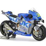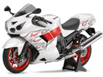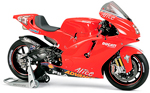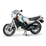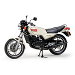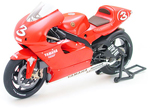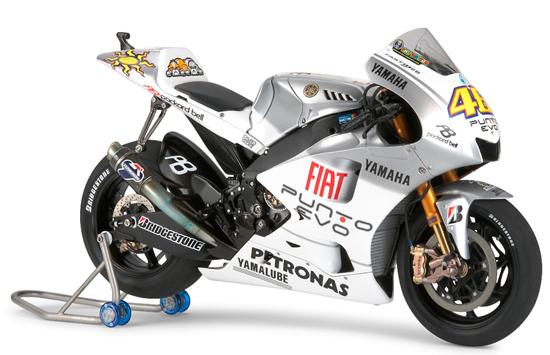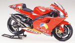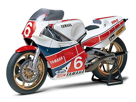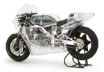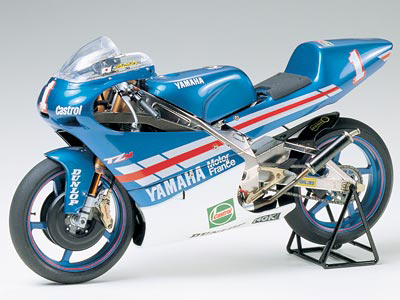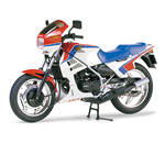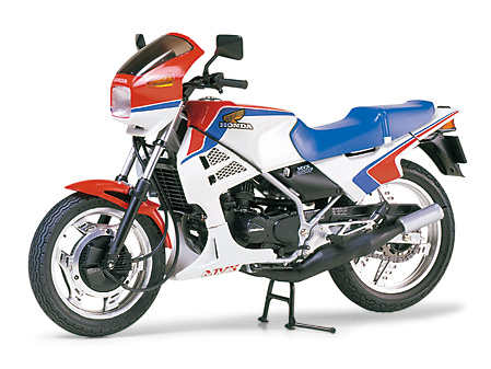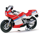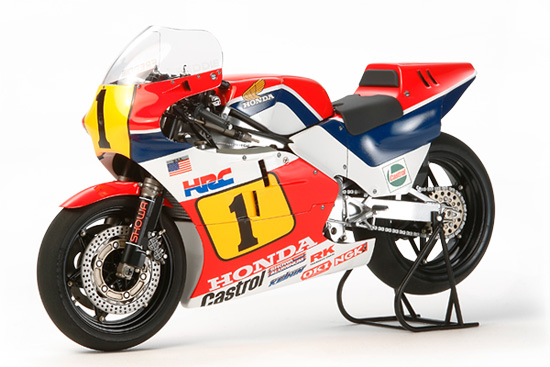 2000年のロードレース世界GP(WGP)500ccクラスに初参戦し、いきなり年間ランキング2位を獲得。注目を集めたV. ロッシ選手のマシン、ナストロアズーロ・ホンダNSR500を再現したプラスチックモデル組み立てキットです。段付きのフロントスクリーン、形状が変更されたフロントフェンダーやフロントフォーク、短いサイレンサーなどスタイル上の特長はもちろん、エンジンの補機類にいたるまで2000年型NSR500の特長をとらえて忠実にモデル化しました