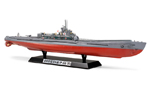 1/350スケール、全長338mm、全幅31mm。舷側部分は左右分割として、外板の継ぎ目表現や舷外電路も繊細に彫刻。通気筒のメッシュ、後部操舵所のループアンテナ、爆雷投下台、プロペラガード、ラッタルなどはエッチングパーツで用意。シャープな仕上がりがディテールを引き締めます。