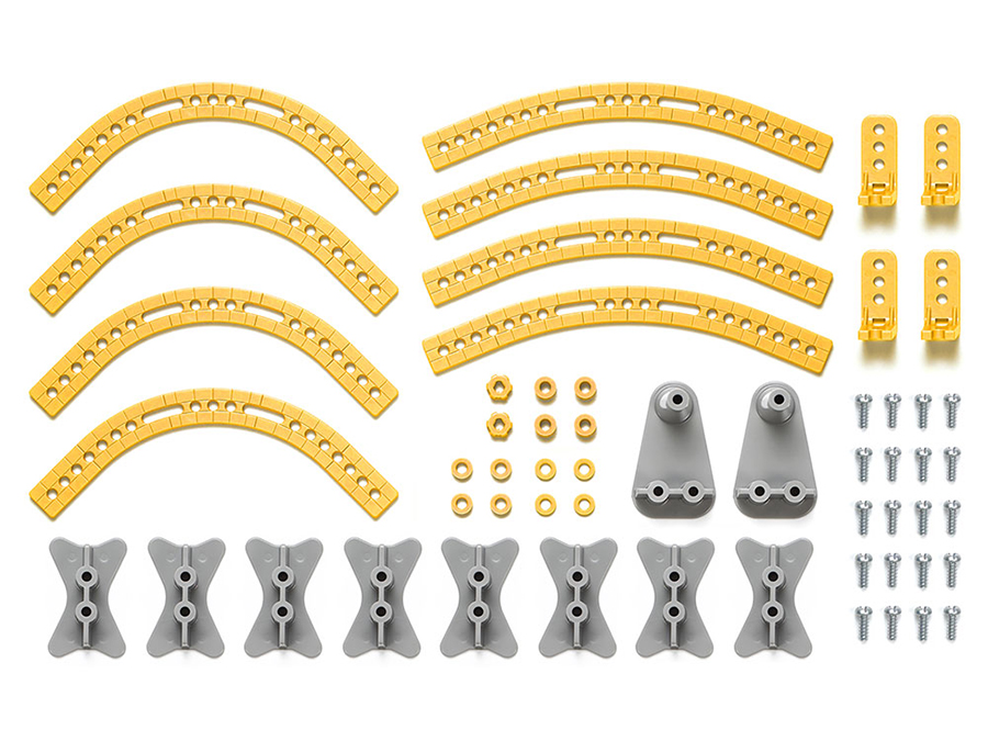 R100アーム×4本、R50アーム×4本、ストッパー付き支柱×2個、連結用支柱×8個、3×8㎜タッピングビス×20本