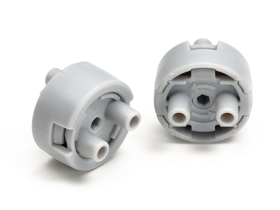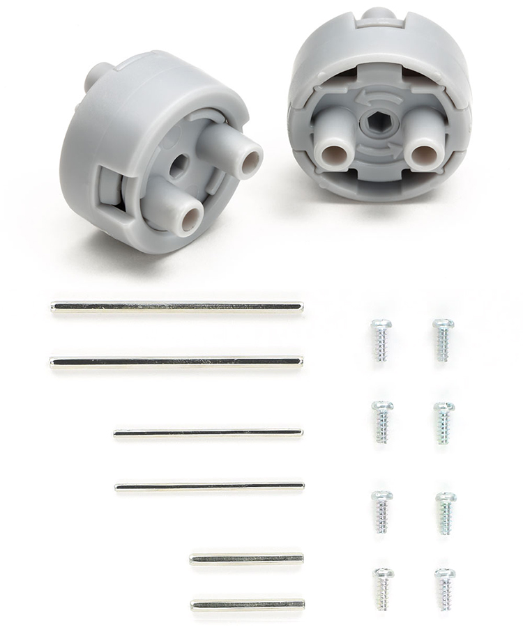 一方向にだけ回転力を伝え、逆方向は空転するジョイントパーツです。ミニ四駆の小径ローハイトタイヤが装着できるほどのコンパクトサイズが特徴。しゃくとり虫が進むように、往復運動から前進する動きだけを取り出したり、往復運動を一方向の回転運動に変えることができます。また、2mm/3mm六角シャフトと4mmネジ付きシャフトが取り付けられるので、異なる太さのシャフトを連結する時にも便利。ユニバーサルプレートやユニバーサルアームなどに直接固定もできます。