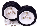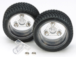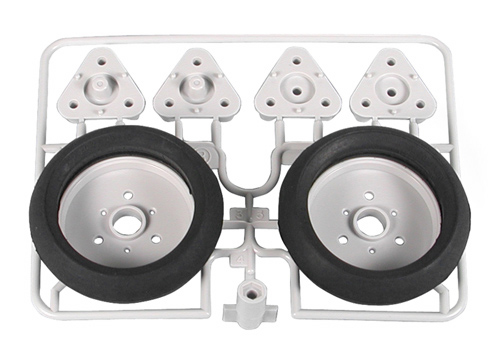 工作パーツとしては最小サイズの直径31mm、幅10mmのタイヤセットです。ホイールは楽しい工作ギヤボックスの3mm六角シャフトに対応。ミニモーターギヤボックスに最適なサイズです