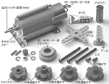 完成時の全長約102mm、全幅約90mm、全高約82mm、ミニモーター付き、単4形電池1本使用(別売)