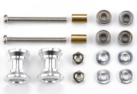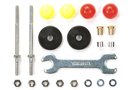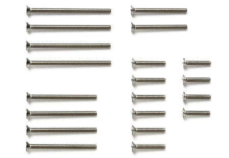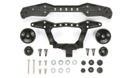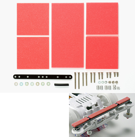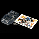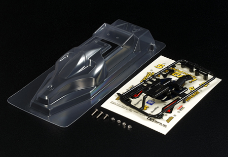 カーボン独特の表面パターンがレーシーなムードを高めます。取り付け用のビスもセットしました。タミヤロゴのプリント入り。