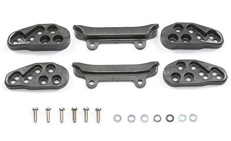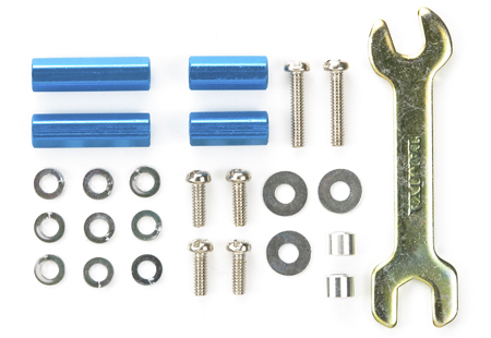 式レースの芝生セクションなどでスピードが大幅にダウンするのを防ぎます。2段ローラー装着時には、ジャンプ後の着地でフェンスに乗り上げてもすぐに復帰でき、完走率を高めます。また、前後方向の取付け位置を選べ、ビスとスペーサーの組み合わせで高さ調整が可能。