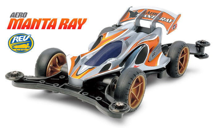 基本性能の高さでRCファンの人気を集めた電動RC・4WDレーシングバギー、マンタレイをベースに誕生したレーサーミニ四駆のマンタレイJr.、その発展型といえるミニ四駆PROのマンタレイMk.Ⅱ。どのマシンも、大海原を泳ぐオニイトマキエイ(マンタレイ)をイメージしてデザインされた、ボディサイドのフィンが特徴的です
