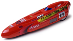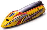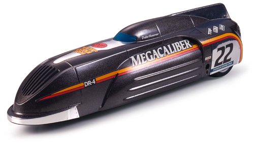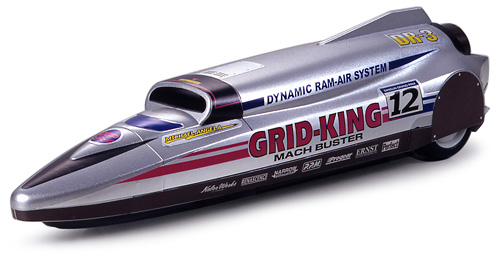 ウエッジシェイプのボディは、まるで空気のかべを突きぬけるかのよう。カラフルなイエローカラーにレッドとブラックのマーキング、それにホワイトロゴがあざやかだ。また、巨大なエンジンを思わせるボディ上部は、シルバーステッカーで手軽に再現できる。ボディ後部のバーニアノズルがスピード感をさらに強調している。