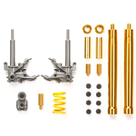 【 基本スペック 】 アルミ製フォークアウターやリザーバータンク、イエロー塗装済みコイルスプリング、樹脂製のフォークボトムなどをセット