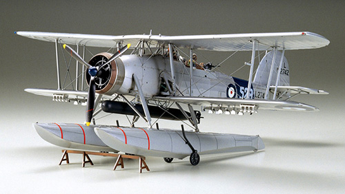 第二次大戦中のイギリス海軍主力雷撃機ソードフィッシュMk.I。その主脚はフロートへの交換が可能で水上機としても運用できるように設計されていました。 着弾観測や哨戒用として多くの戦艦や巡洋艦に搭載され、特に1940年4月13日のナルビック海戦では戦艦ウォースパイト搭載機が着弾観測と爆撃任務に発進、ドイツ駆逐艦7隻の撃沈に貢献し、さらに潜水艦U-64 を爆撃、撃沈するという戦果をあげました。 このソードフィッシュMk.I水上機型を精密に再現したプラスチックモデル組み立てキットです。支柱で支えられた複葉の主翼など手堅い設計の機体を実感豊かにモデル化しました。地上運搬用台車や駐機用支持架もセット。マーキングは第701カタパルト飛行隊所属機など2種類です。