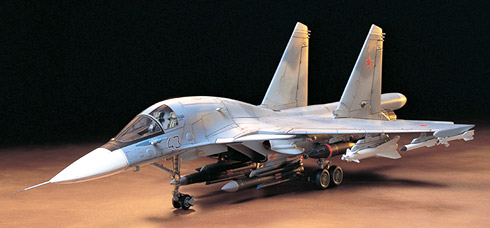ミグ29とともにロシア空軍を代表する新鋭戦闘機、スホーイSu-27 。その戦闘爆撃機型Su-34のプラスチックモデル組み立てキットです