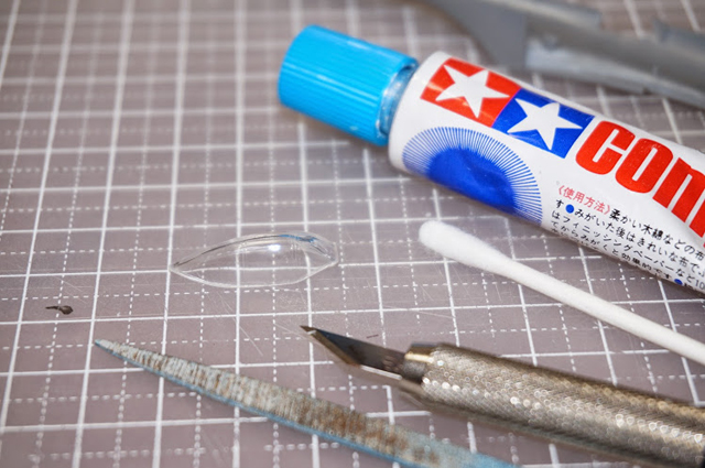 キャノピーです。ナイフ、やすりでバリを取ったら、コンパウンドで磨きます。