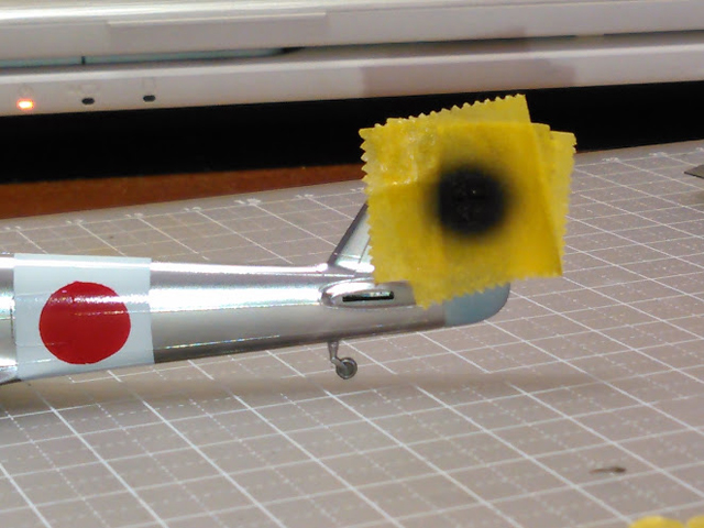 また、日の丸、防空識別帯(日の丸のまわりの白い帯状のもの)、垂直尾翼の部隊マークは塗装仕上げです。