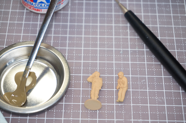 士の塗装。下地は肌色。乾燥が早く、均一な仕上がりなので下地はエアブラシて