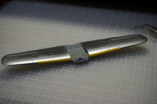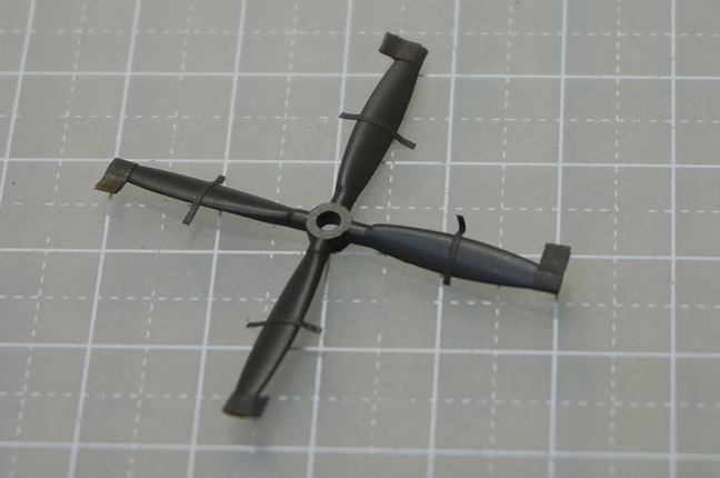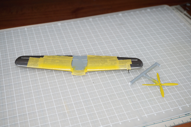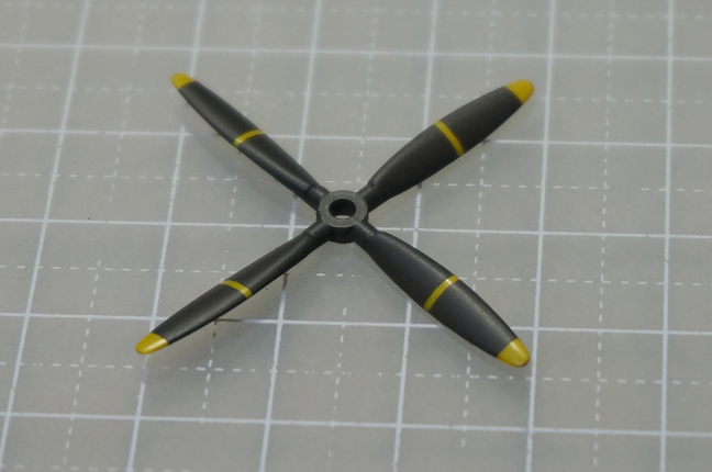 プロペラはイエローにしたい部分をマスキングして茶色に塗装