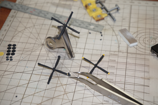翼の部分塗装。なぜ黒いか?それは実機のこの部分がゴムだから