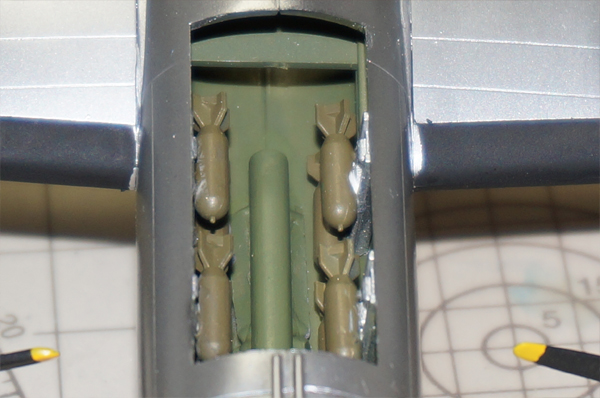 しりもち状態を解消するため、爆弾倉内前のほうに重りを追加