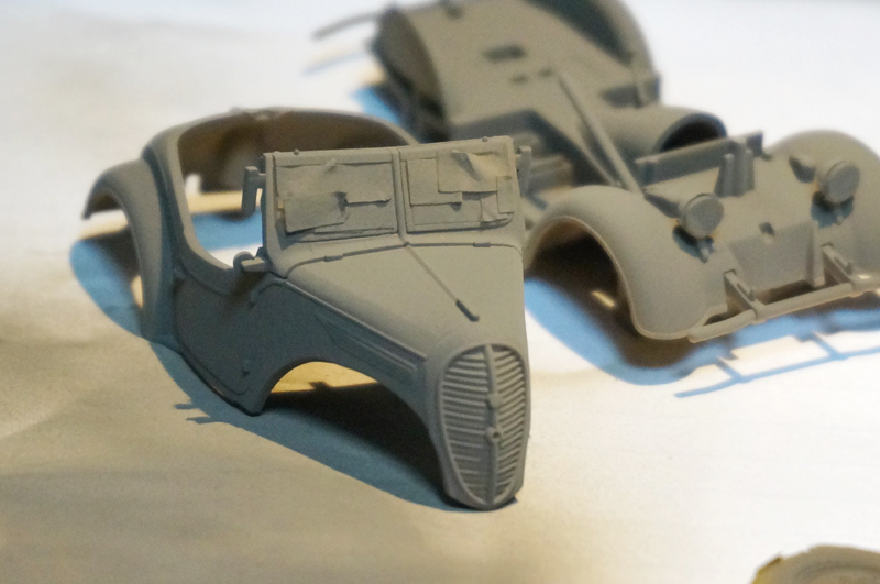 今回のモデルは前期型の乗用車タイプで、アメリカ軍のジープと違い、貨物を乗せ、トラックとして使うことは考えられてないところ。くろがね四起は、ホイールベースが短く、全体的に丸いデザイン。