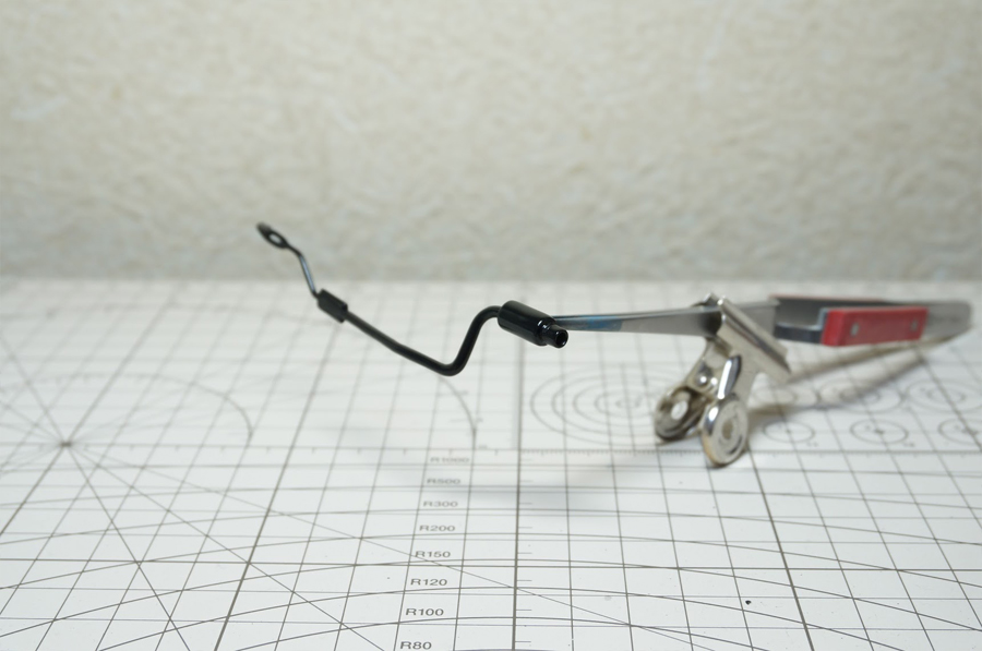 0.5mmのドリルで穴をあけて、0.5mmの真鍮線を通しています。