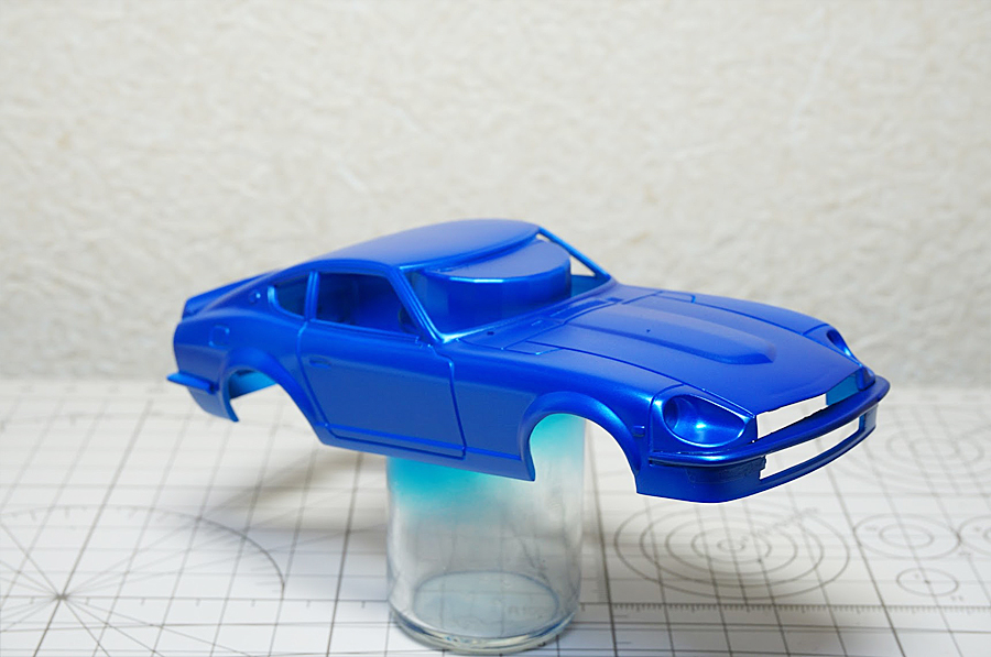 下地にメタリックブルー、上塗りに(GSIクレオス色の素)シアンを使いました。